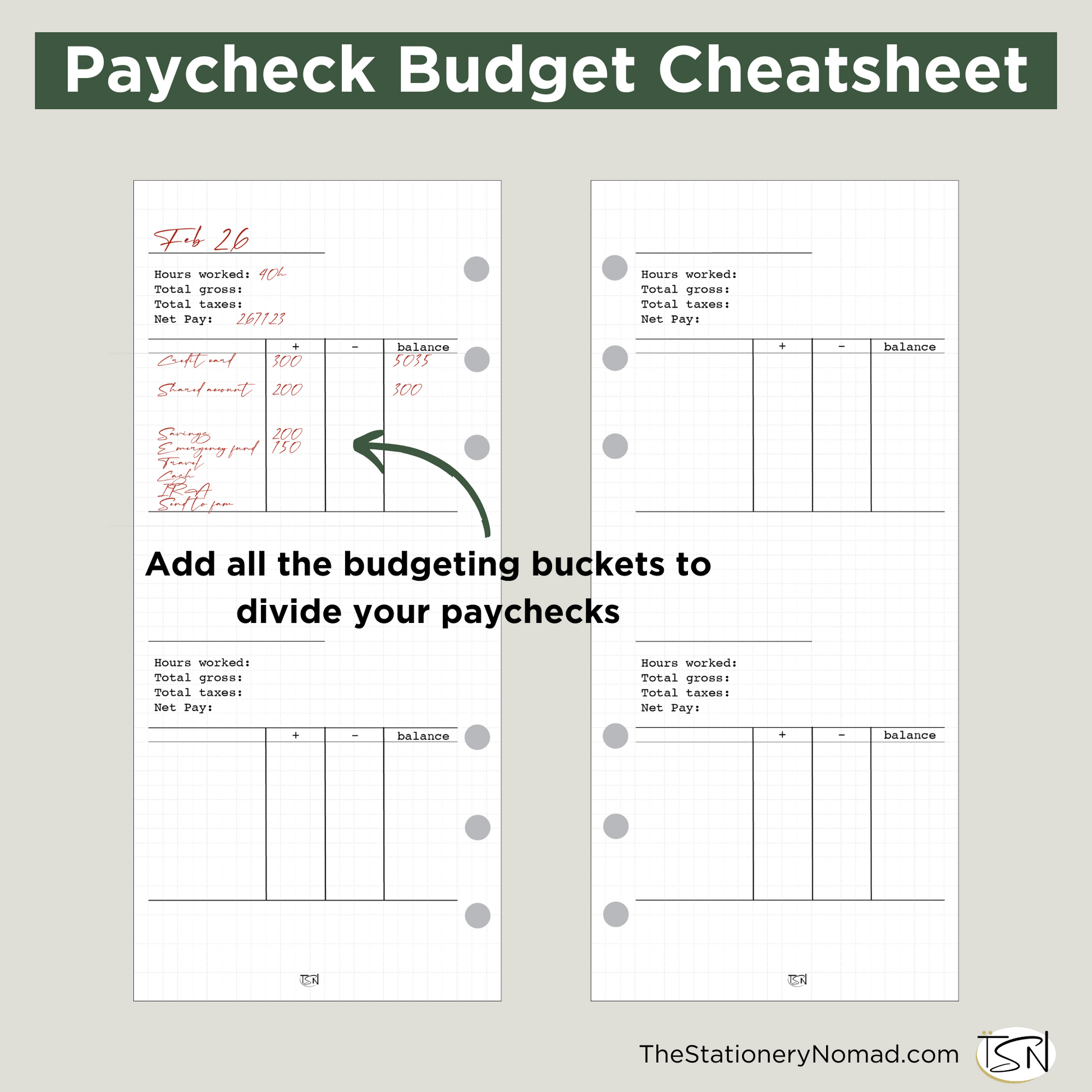 Paycheck Budget Cheatsheet